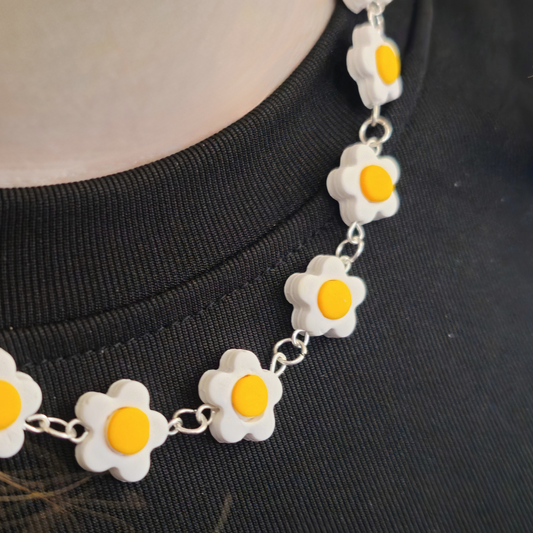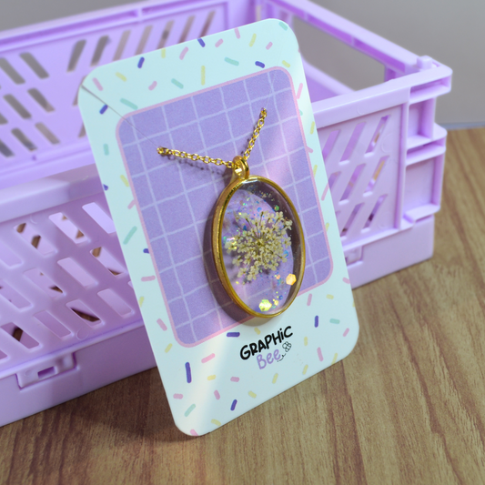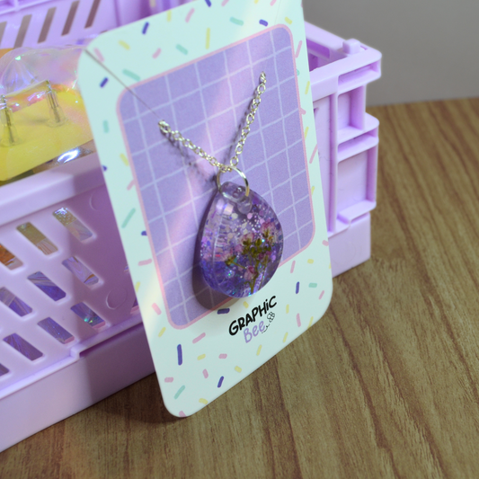 Teardrop Shape Purple Glitter and Floral Embedded Necklace